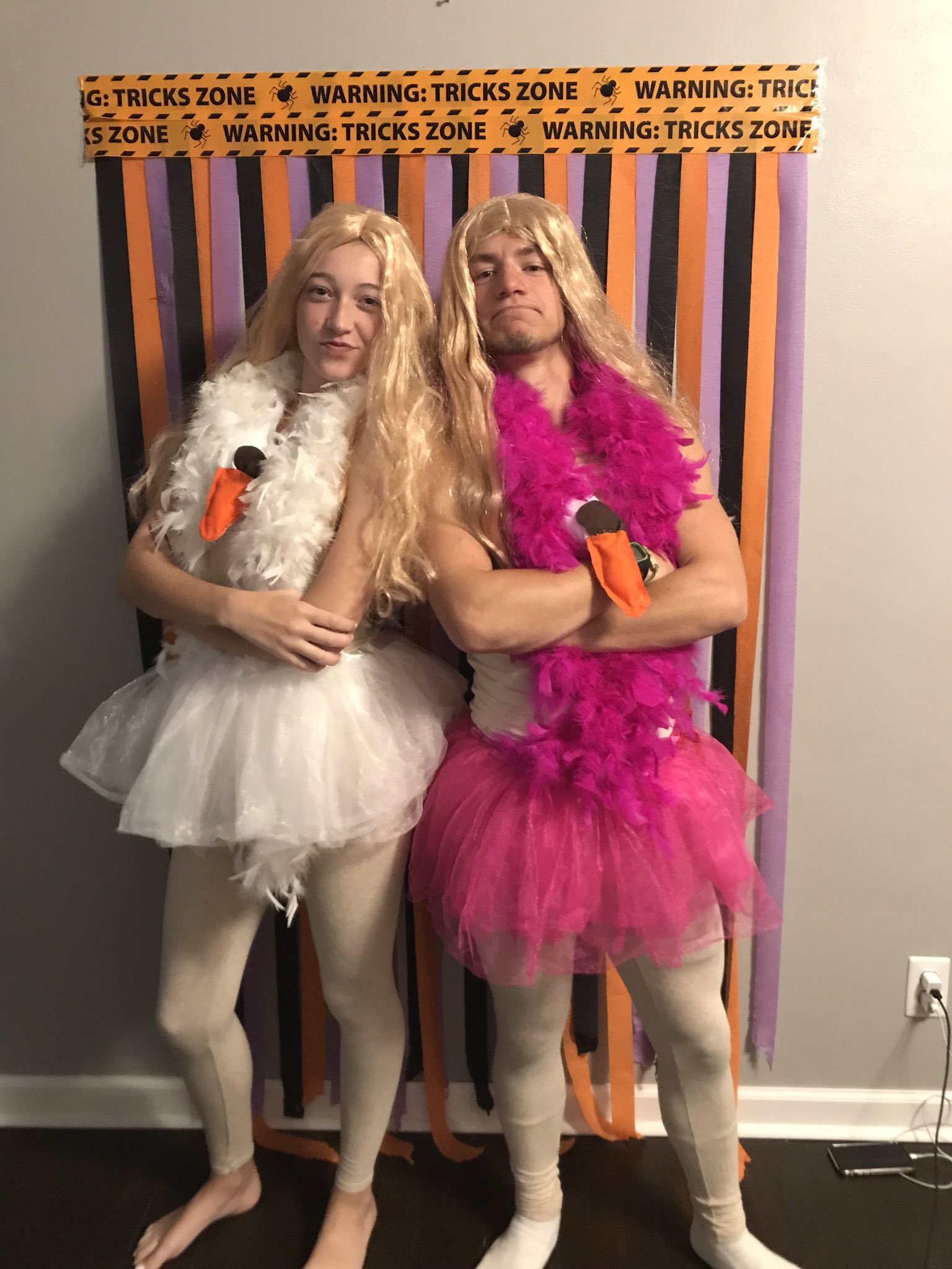 This costume set is a great way to match with your bestie! Simple choose which one of you will rock the white or pink version. Then, get the corresponding tank top, feather boa, and skirt to go with the color you chose! To complete the look, be sure to wear a blonde wig, a pair of tights, boots, and light make-up!